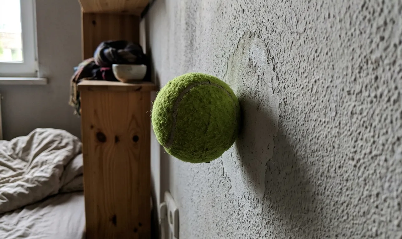 Tennispallon käyttäminen seinää vasten ongelmaalueen syvään itsehierontaan.